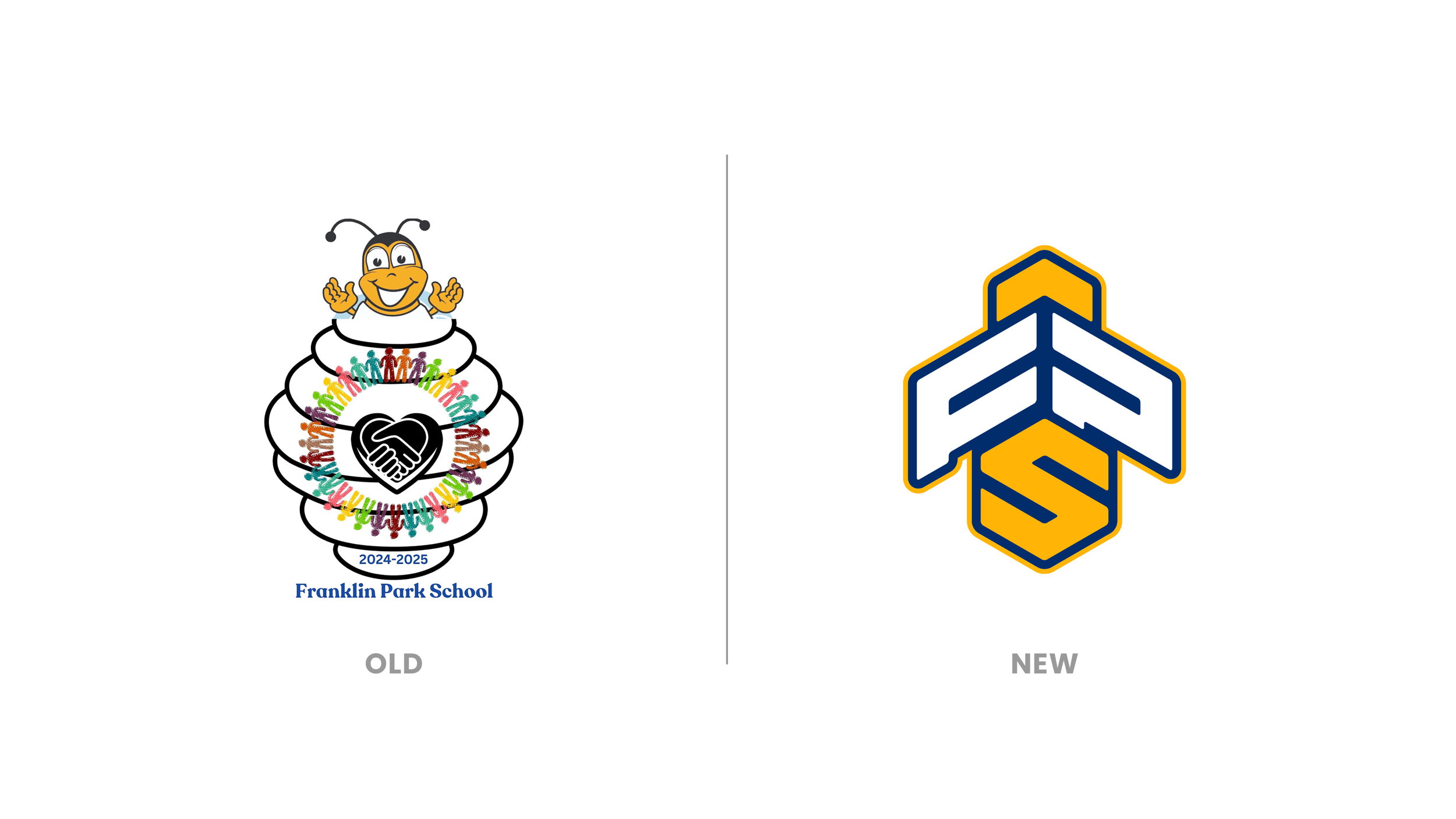 With its long-standing mascot, the bee, serving as a symbol of community, collaboration, and hard work, Franklin Park School sought a refreshed identity that better reflects the spirit of its students and staff. Moving away from an outdated, childlike clip art style, the new design centers on a clean, modern logo that balances playfulness with professionalism.
