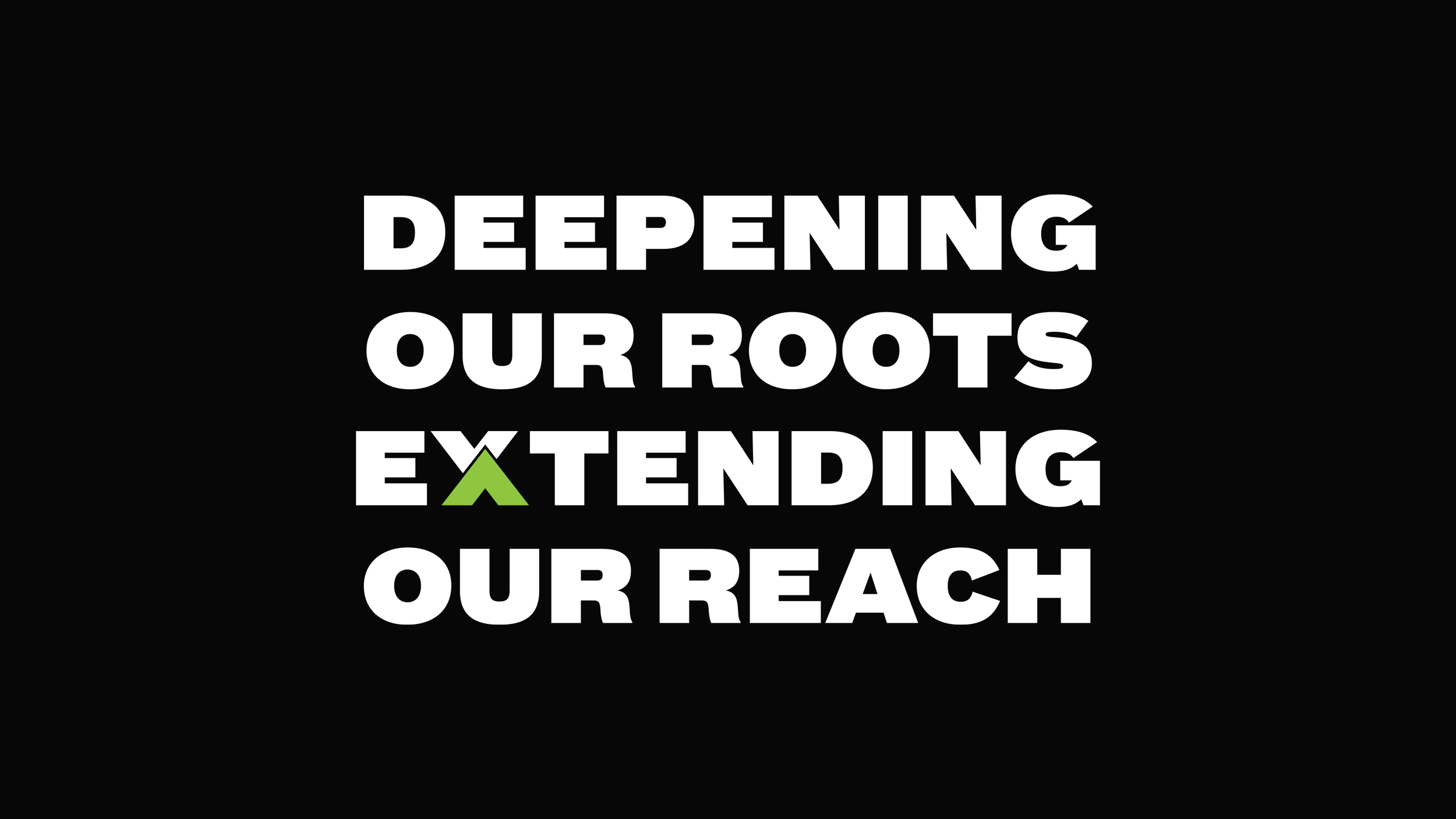 For Maple City Chapel, the tree, though meaningful, had become an overused symbol among ministries, calling for a fresh and modern approach. Rooted in the tagline, "Deepening Our Roots, Extending Our Reach," the new graphic features two simple arrows: one pointing down for spiritual depth, the other up for outward growth. Together they form an abstract "X," a clean and versatile mark that reinforces the church’s mission and unifies its brand.